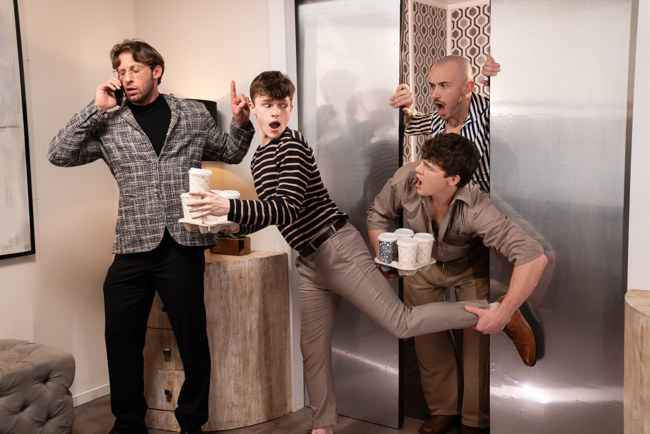Today In People Being Butt Fucked While Stuck Between Elevator Doors: Phoenix Leo Tops Oliver Marks In Men.com's Devil Wears Prada Gay Porn Parody