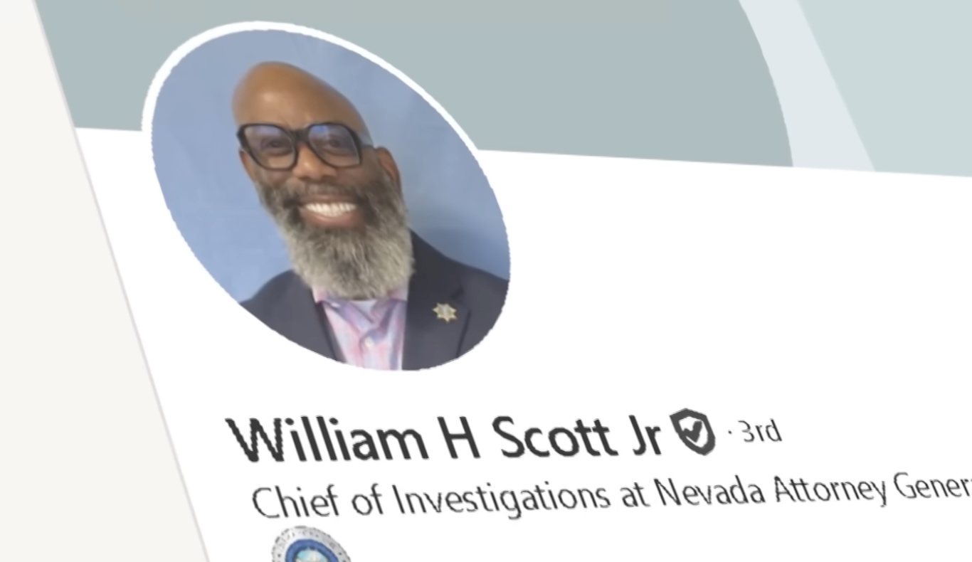 I love how they say that the law requires his face to be blurred, but then they go ahead and show his face five seconds later. Here’s the bigoted pig via 8News in Las Vegas: