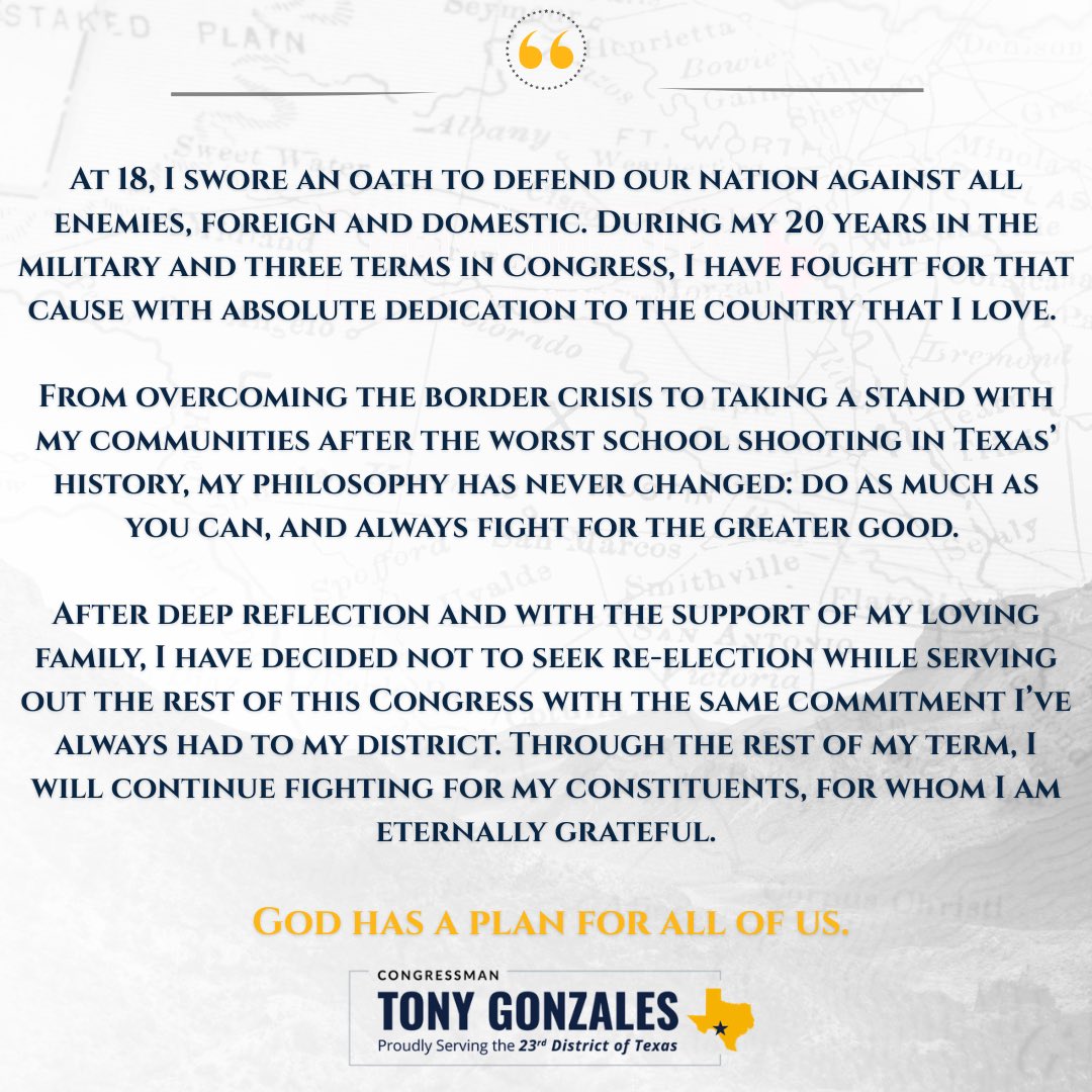 It takes a lot to get a Republican incumbent to give up and leave office, but I guess having a dead mistress who self-immolated is just too problematic, even for the GOP. Report above via KENS in San Antonio, Texas, and Gonzales’ bullshit statement is below.