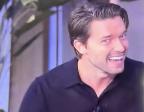 He was already so f*cking hot, but I think Patrick Schwarzenegger looks even hotter when he’s bashfully talking about gay porn. Here is Arnold and Maria’s son on the Kelly & Mark daytime talk show talking about how he was informed of the gay porn parody that Men.com made about him and his series, The White Lotus: